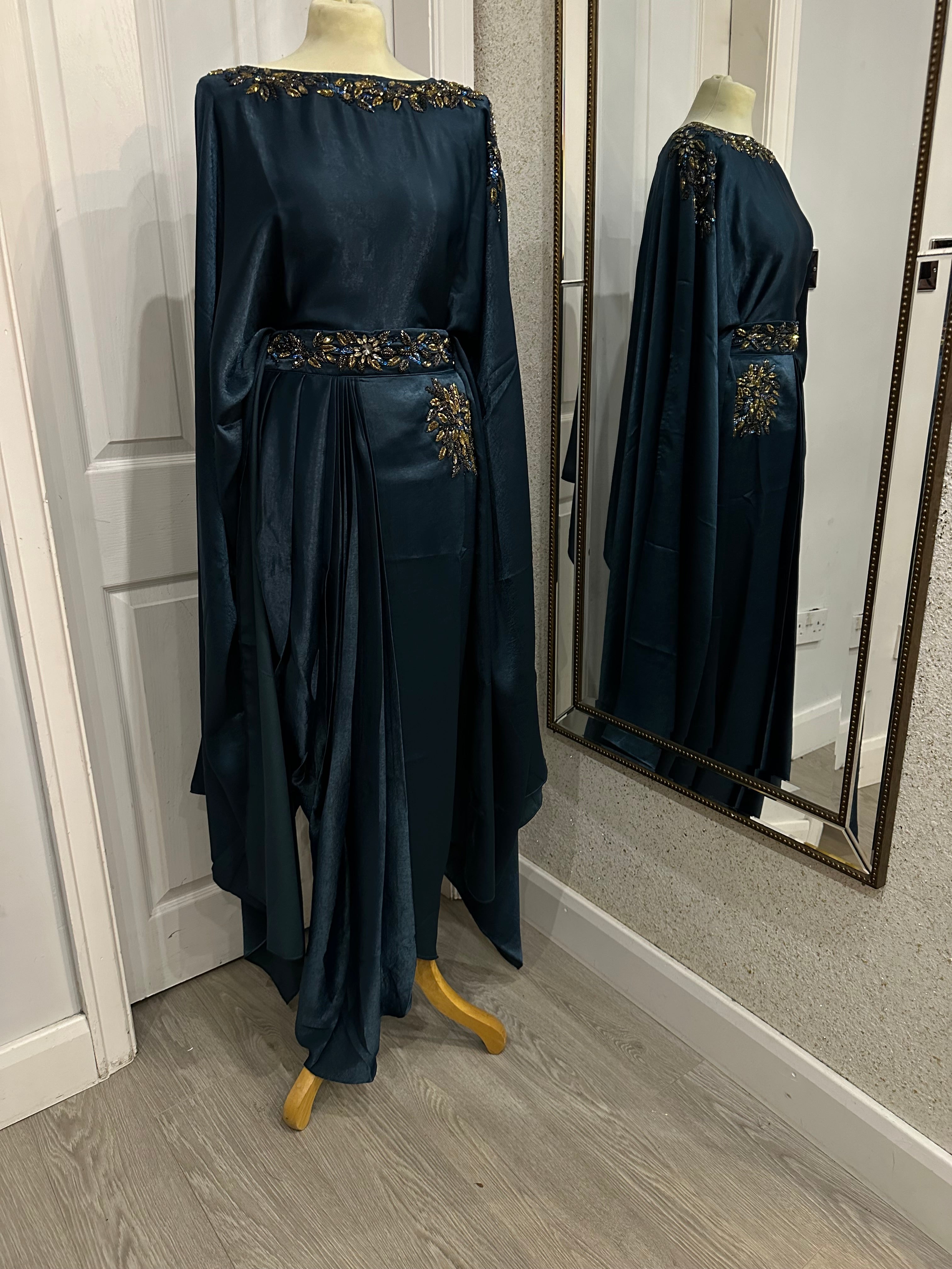 2 piece - Silky velvet satin skirt with a cape top. Cape can be tucked in at the back too.
