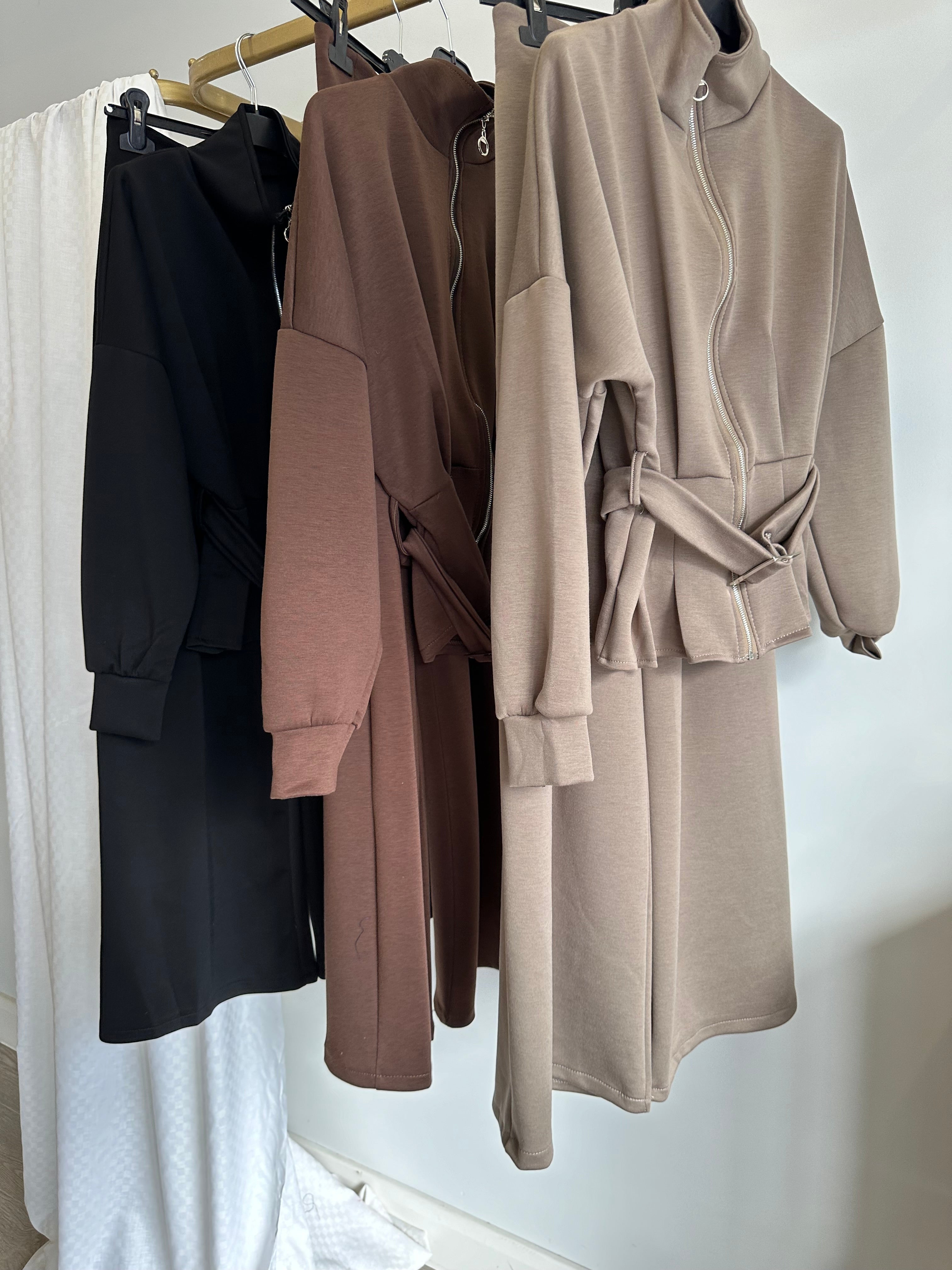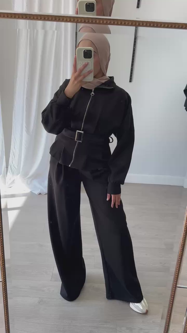 Crafted from a soft fabric, the Alana Coord offers a chic look with its belted design, peplum style top, and cuffed sleeves. Elevate your wardrobe with this sophisticated and versatile piece. Features a long metal zip that enable full jacket style opening and a polo collar.