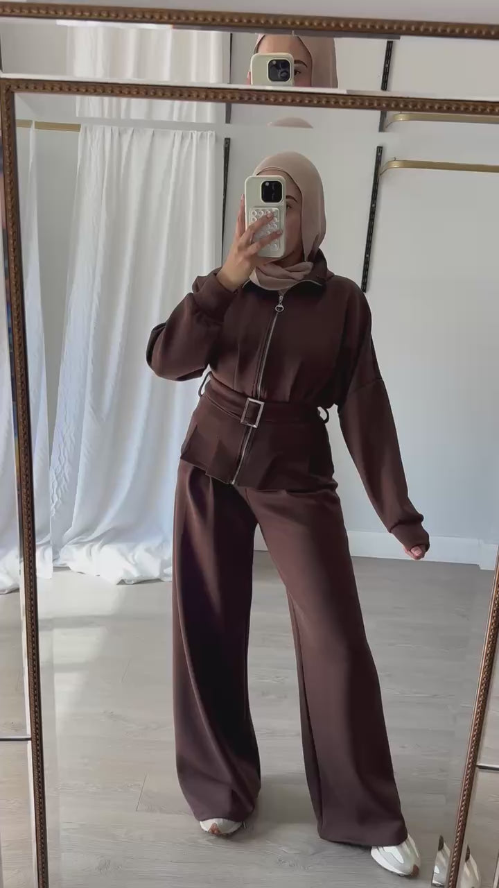 Crafted from a soft fabric, the Alana Coord offers a chic look with its belted design, peplum style top, and cuffed sleeves. Elevate your wardrobe with this sophisticated and versatile piece. Features a long metal zip that enable full jacket style opening and a polo collar.