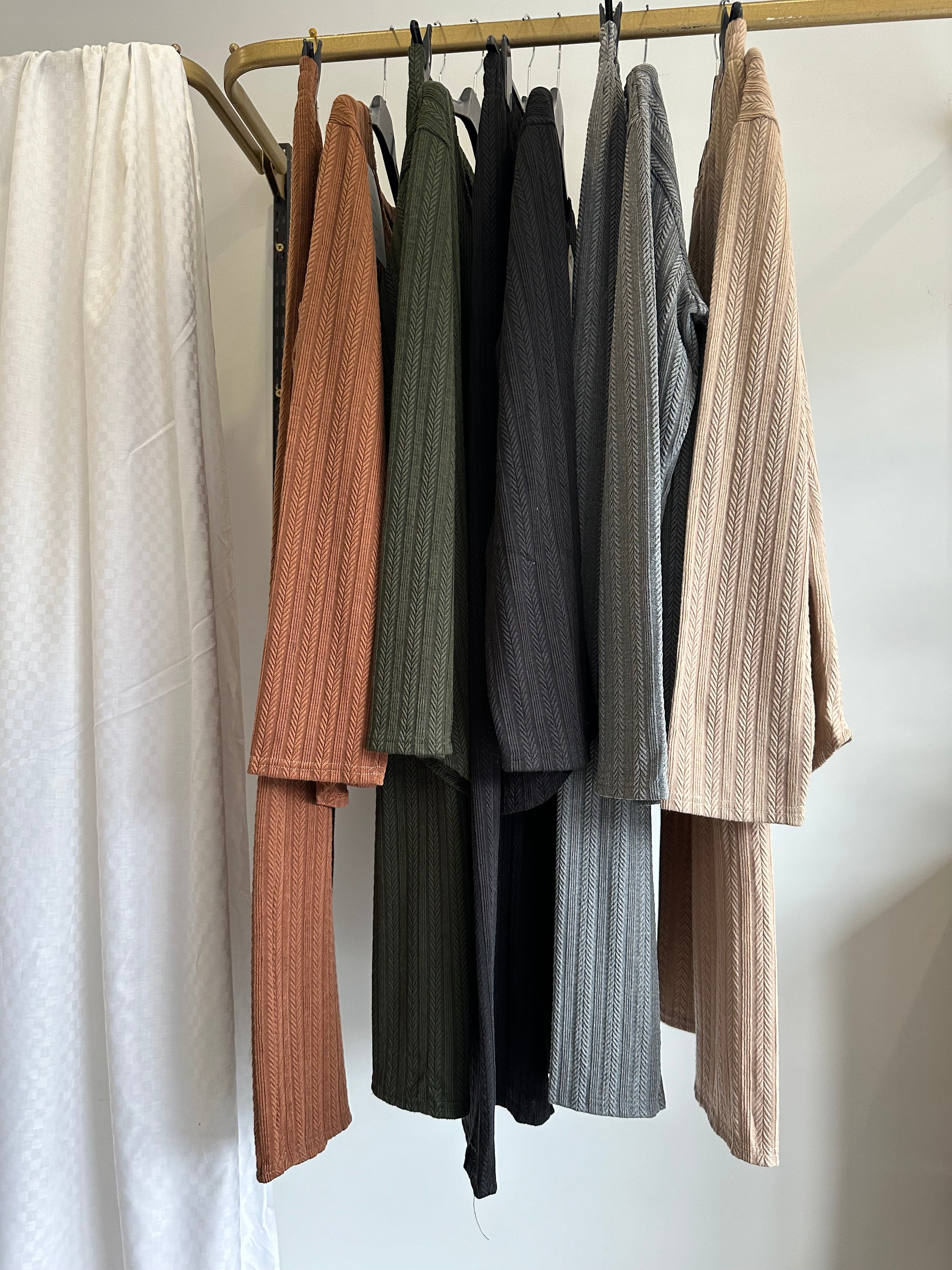 Introducing the Classic Coord, featuring a self-printed vertical pattern. Made with lightweight winter fabric, this versatile piece can be worn all year round - perfect for the unpredictable British weather. Embrace effortless style with this must-have addition to your wardrobe.