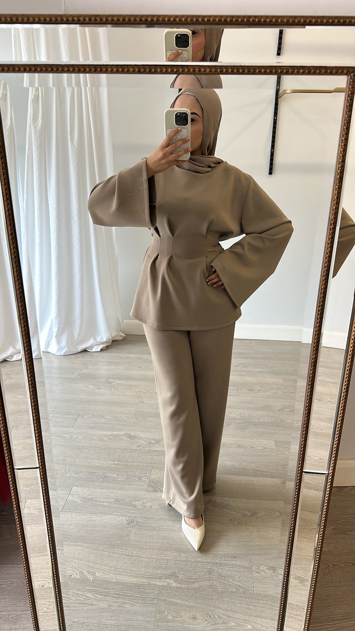 Expertly crafted with a soft winter fabric, this Pintuck Coord features a cinched waist and belted back for a personalized and flattering fit. The Pictuck detail adds an elegant touch, making it a versatile addition to your winter wardrobe.