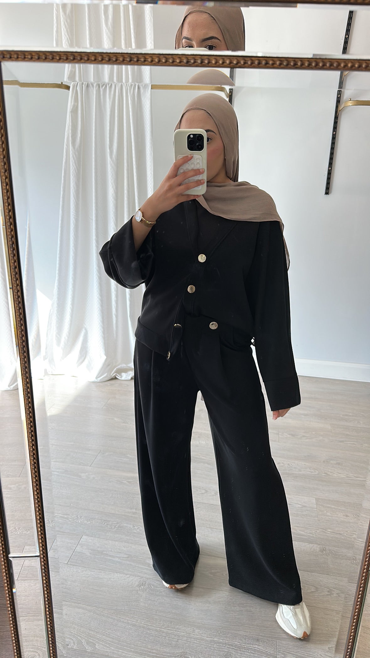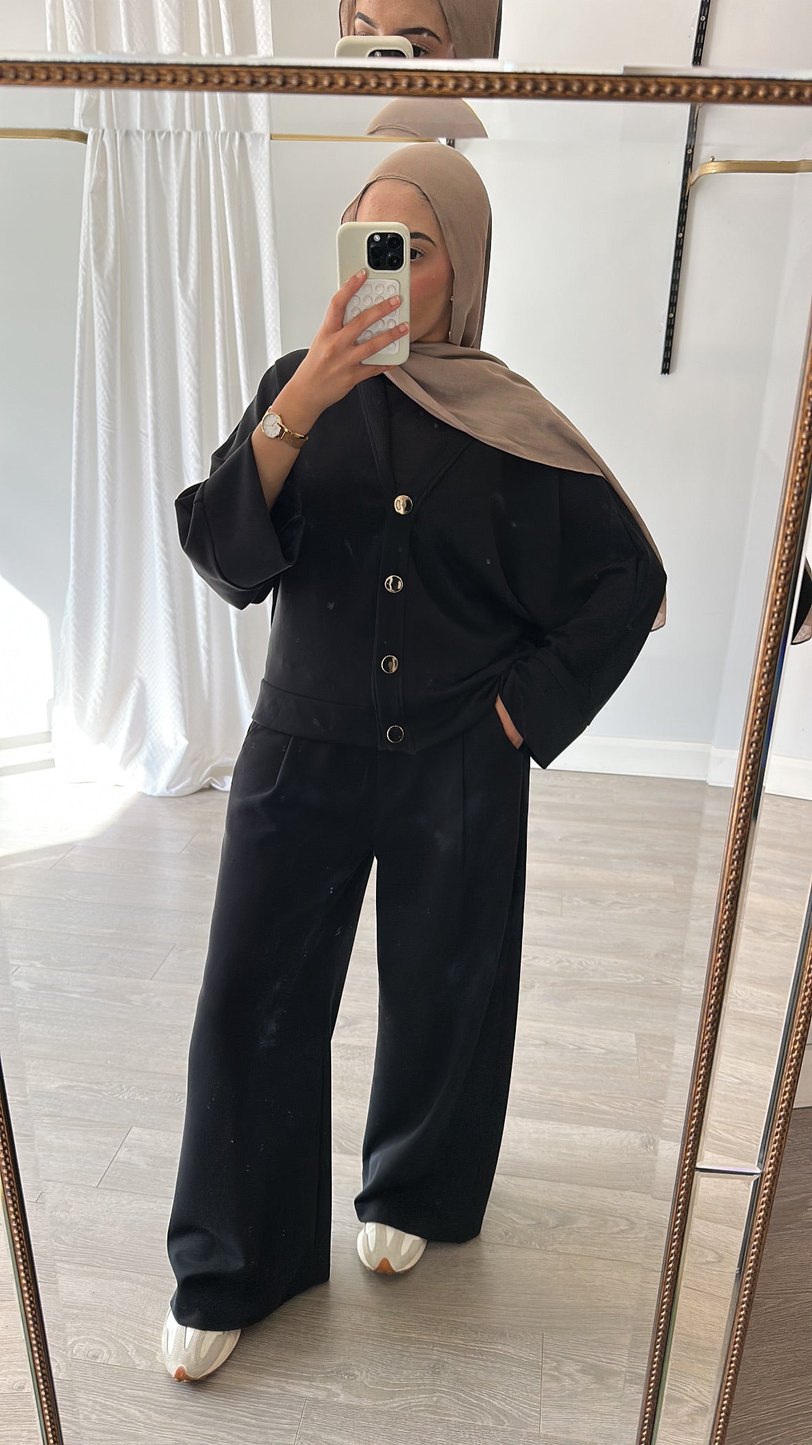 Upgrade your style game with our Taylor Coord. Made with luxurious, buttery soft winter fabric and featuring gold button details, this versatile cardigan set can be worn all year round. The trouser includes pockets and button details, while the top can be worn open or closed, tucked in or out, and as separates. A must-have for any fashion expert.